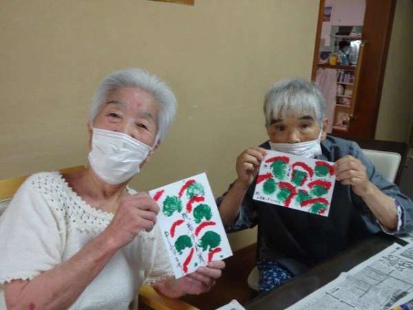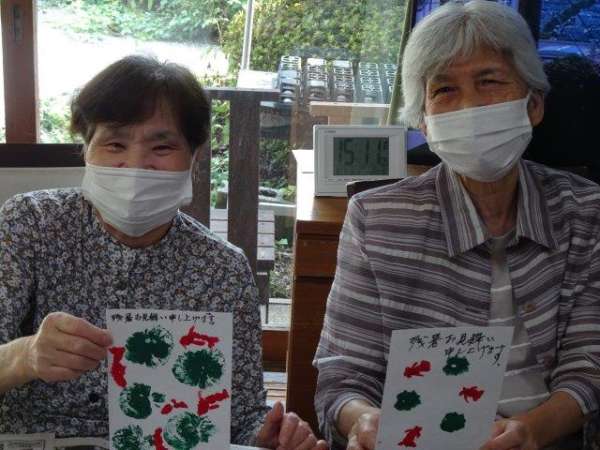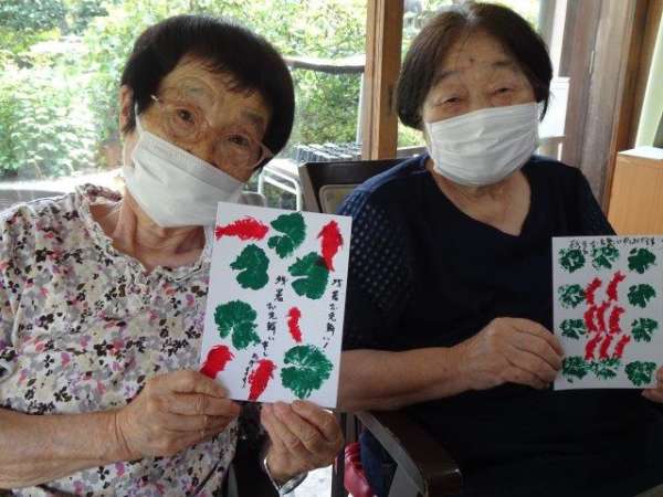 涼しそうな元気な絵手紙の出来上がり