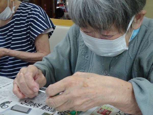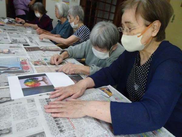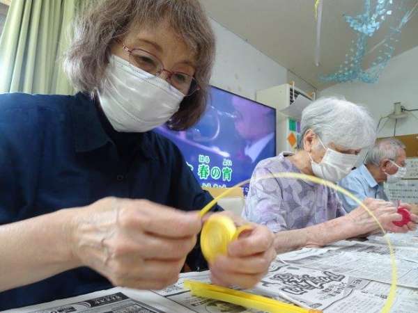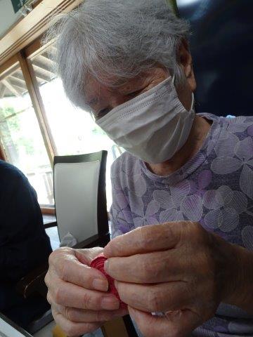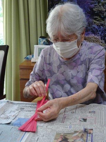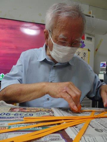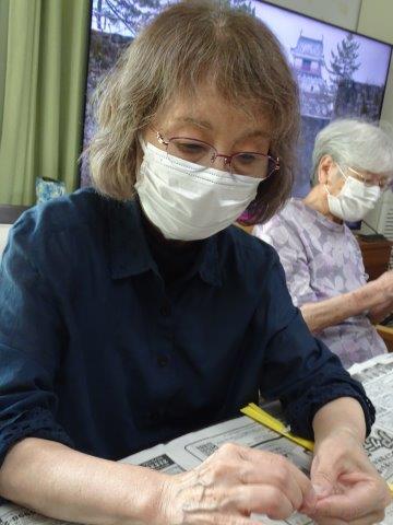 糊でつなぎ合わせる時に,ゆるまないよう気をつけています