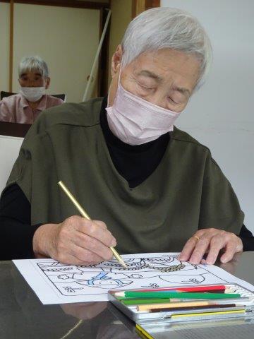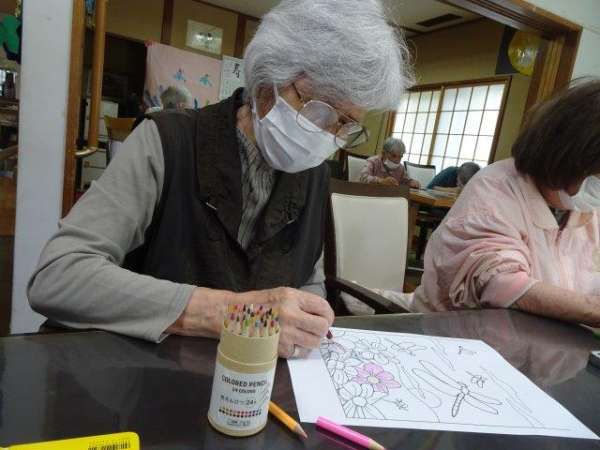 では、今日は 🍂 のぬり絵 🍂 でもして、のんびりレクリェーションにしましょう(´・ω・`)