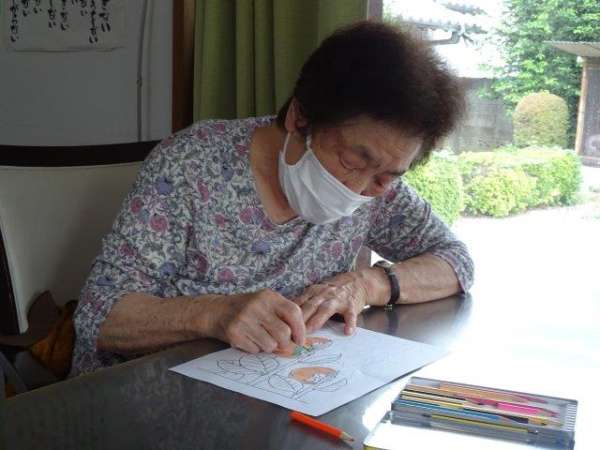 一生懸命に手を動かして、ぬりぬりるんるん (音符)るんるん (音符)