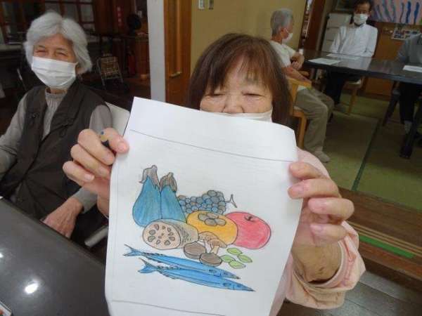 色々な秋の絵が綺麗に塗られていきますグッド (上向き矢印)