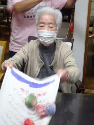 続いて、運動を交えながらのタオル運びリレーひらめき