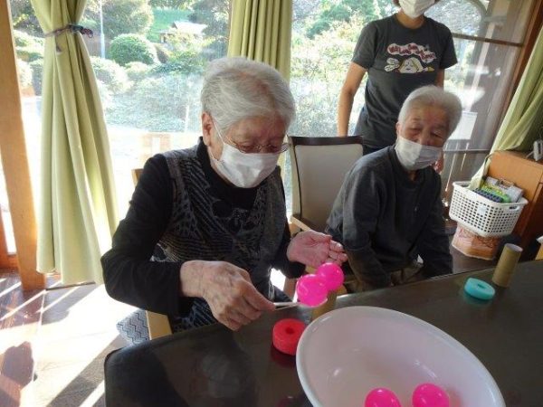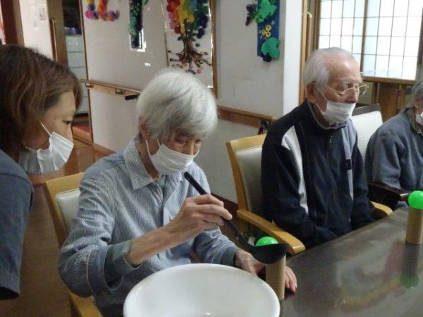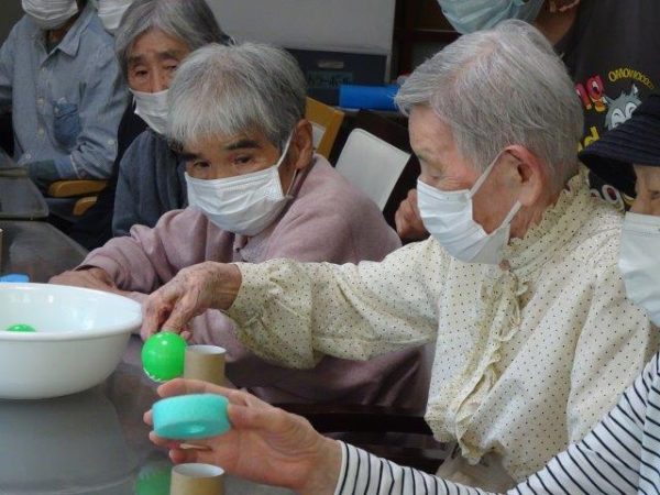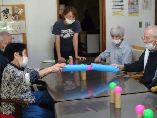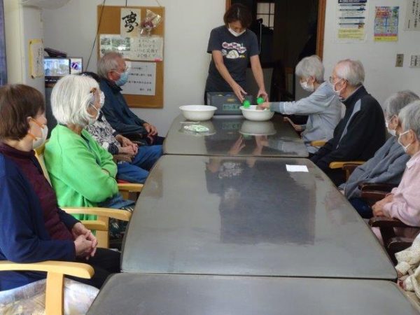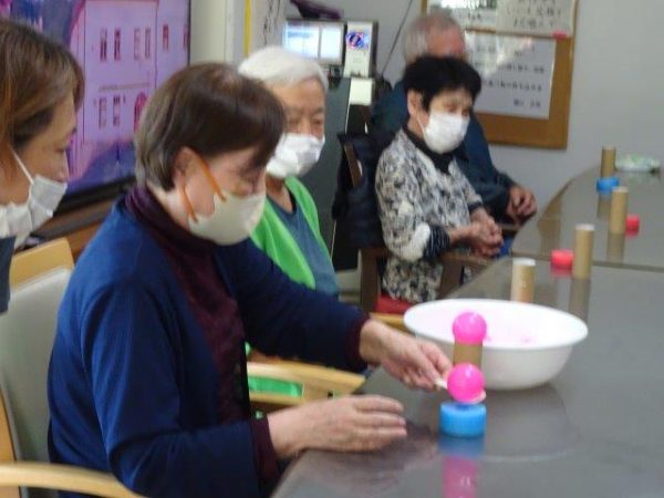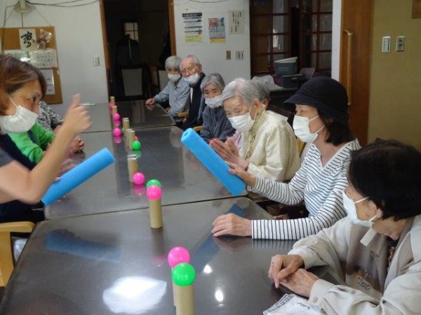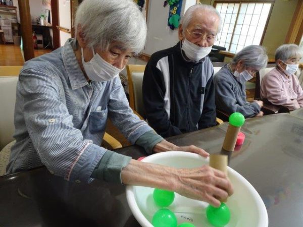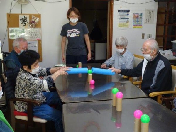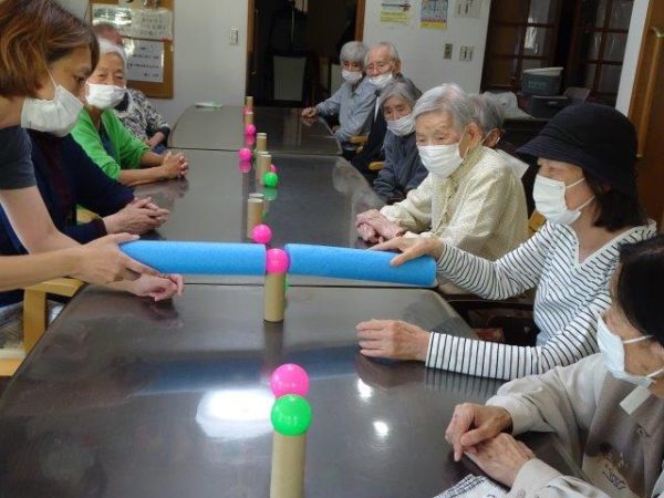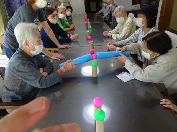 ボールすくいということで、2列で相向かいに座って頂き、体制完了です
