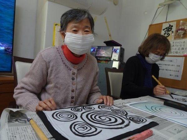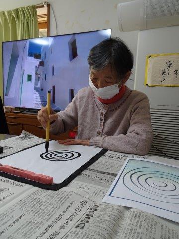 練習では、渦巻きを書いたり線をゆっくりと確かめながら筆ならし