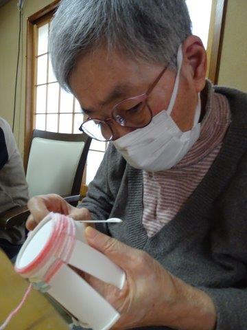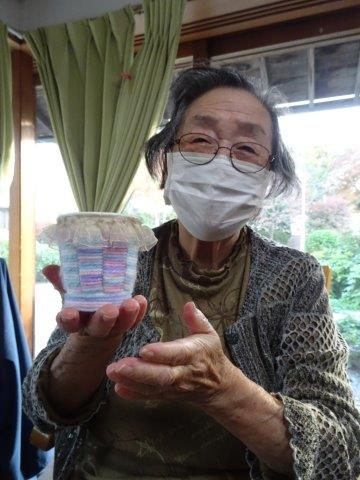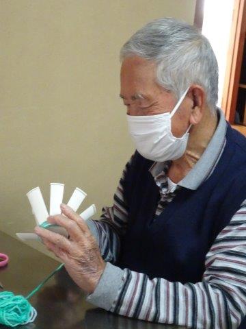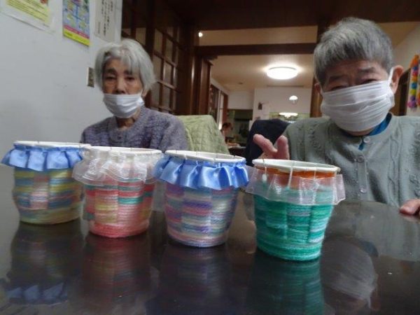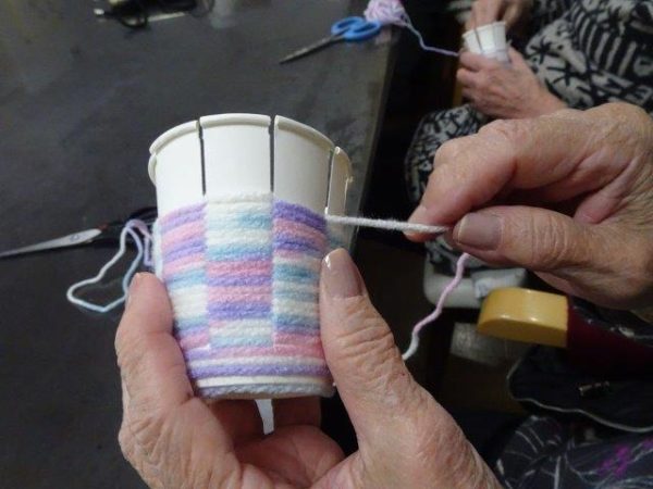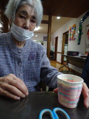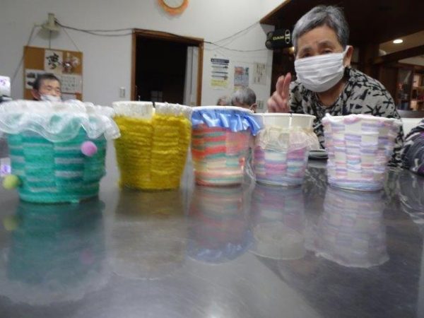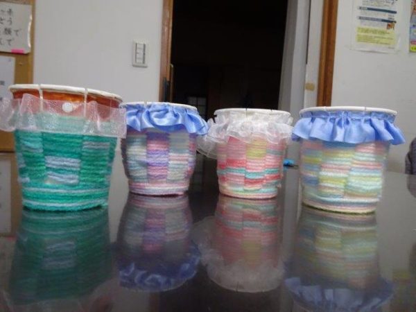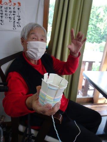 紙コップと毛糸を使って、小物入れ作りを行いました😀