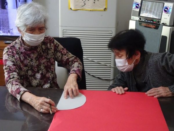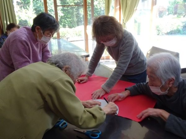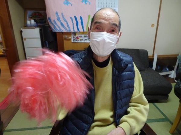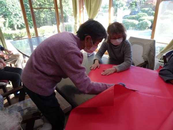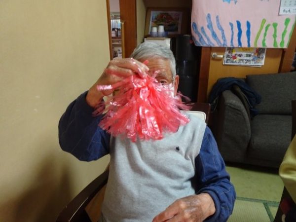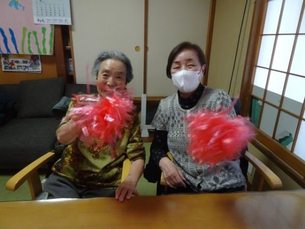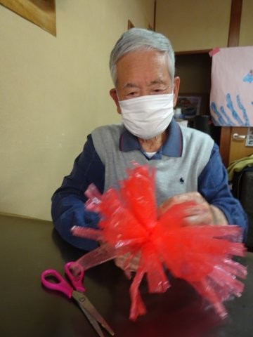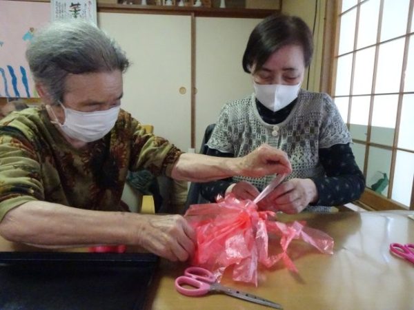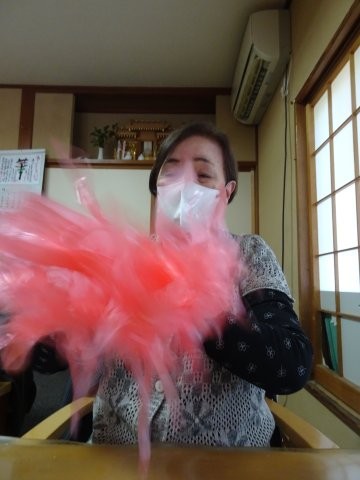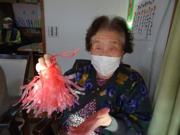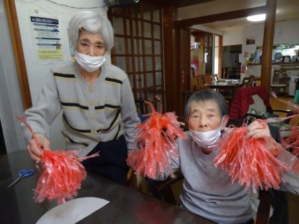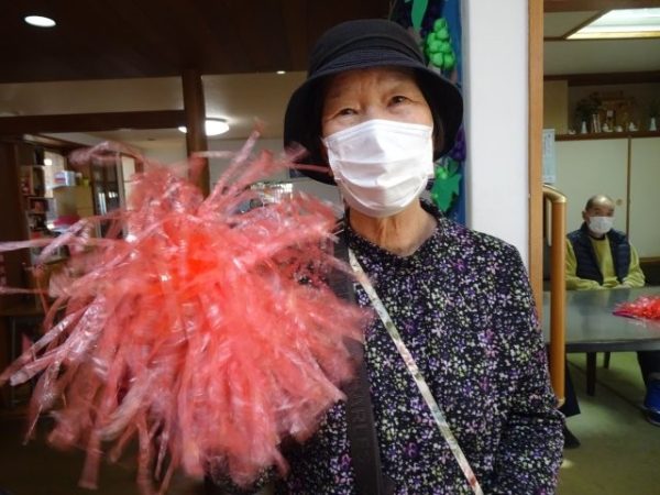 手が空いた方が続々とポンポン作りに参加してくださいますうれしい顔