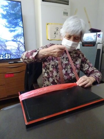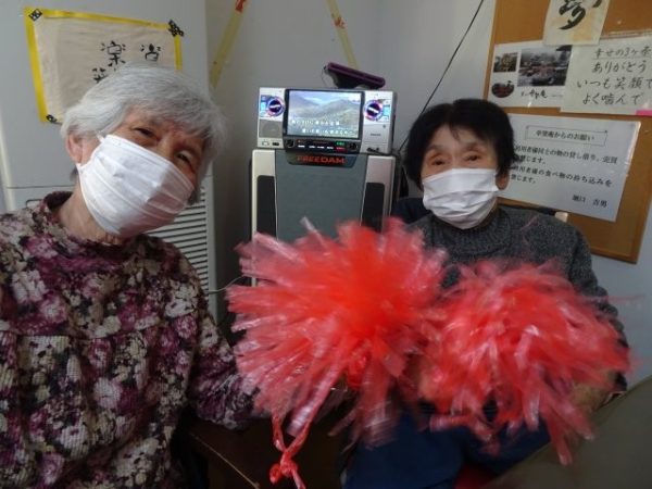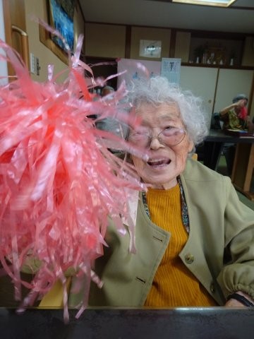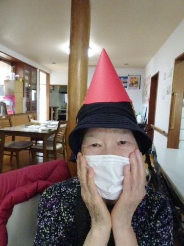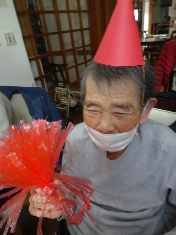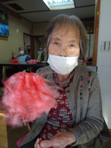 お母さま、出来上がったポンポンと紙を丸めて作った三角帽子をかぶって、周りを笑顔にしてくださっていました(#^.^#)