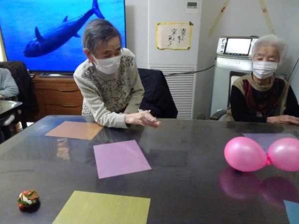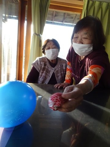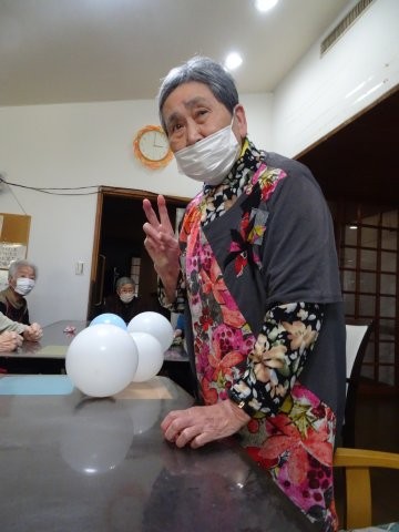 風船で作った雪だるまでゲームを楽しみましたdouble exclamation