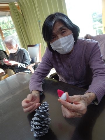 今日のレクレーションのテーマは「松ぼっくり」