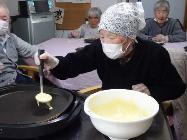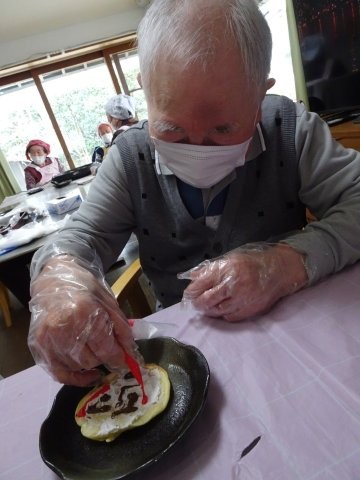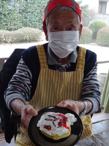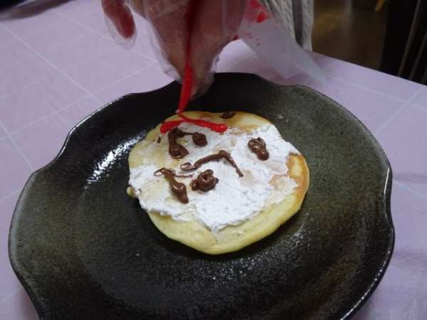 今日は、おやつのホットケーキ作りの中で、隈取デコレーションをしていただきましょう