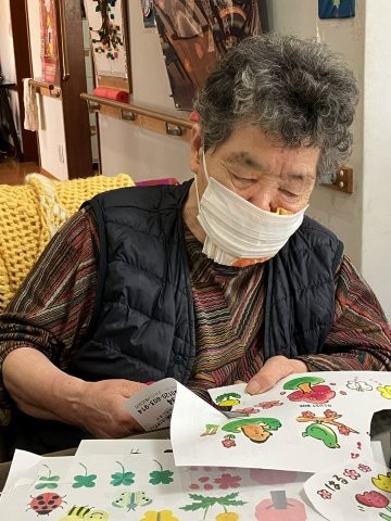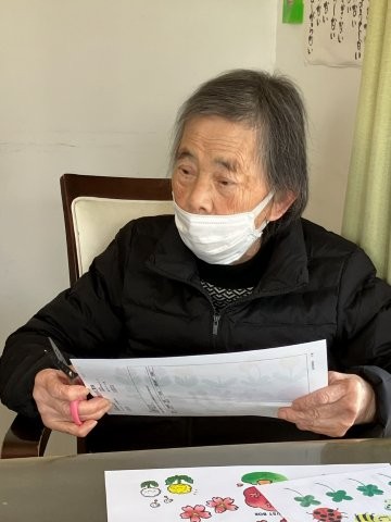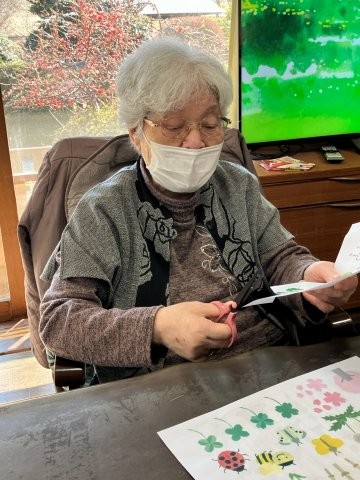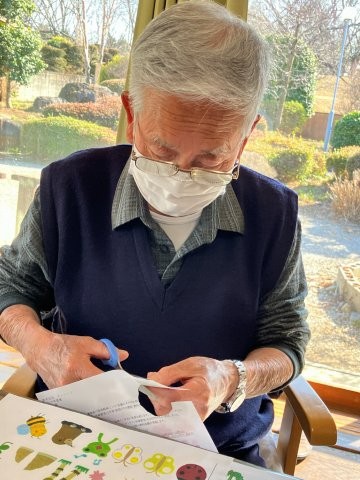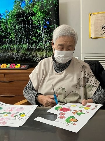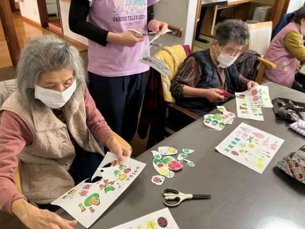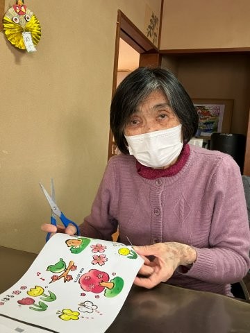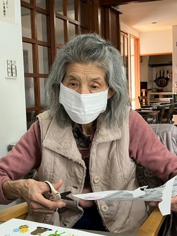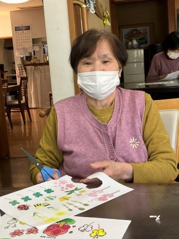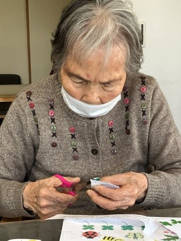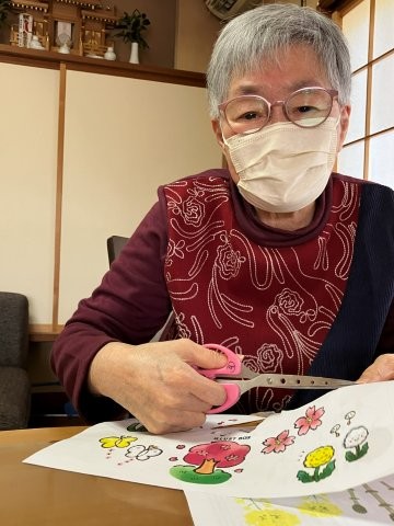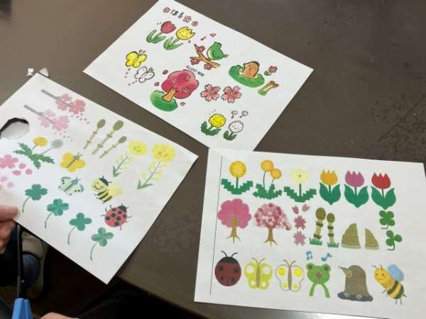 ご用意しました春のイラスト、まずは、ハサミで切っていただきました