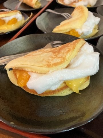 手作りの、オムレット風パンケーキを召し上がって、疲れを癒して下さいねm(_ _”m)