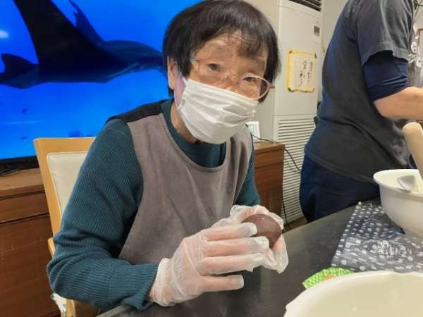 利用者様にあんこを包んでいただきました(/・ω・)/✨