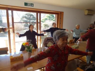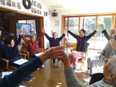 歌を歌いながら、隣の方の手を叩き合いながらリズムを