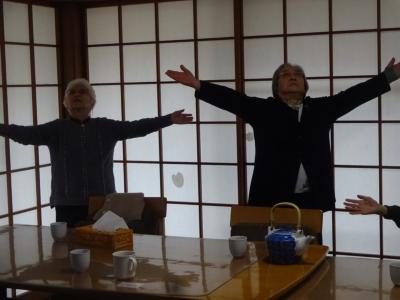 お昼ご飯前の「あいうべ体操」で午前の運動の締めくくり