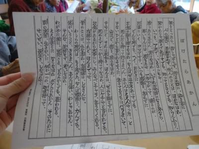最後は、皆さまの手のぬくもりを感じてもらいながら、