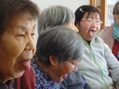 お父さん、あいうべの「う」を行っているところです![]()