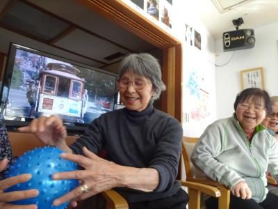 まずはウチワを使っての、ボール転がしです![]()