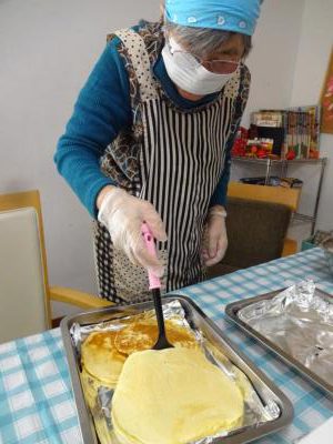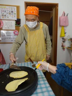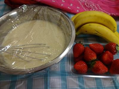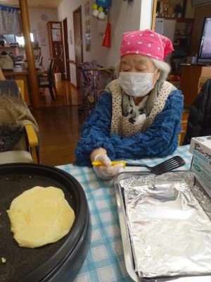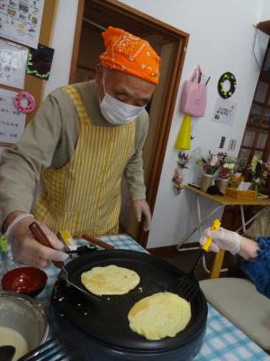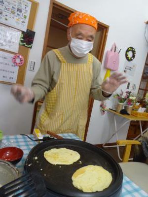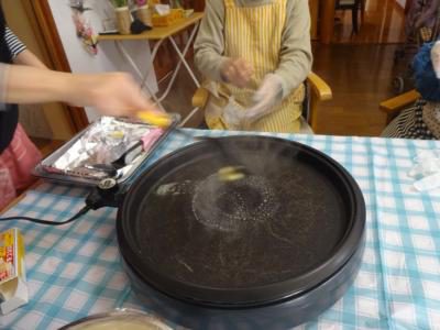 蒸しパン用生地をポットプレートで焼いていきます![]()