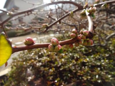 いつの間にか、ボケの花の蕾もふくらんでいました