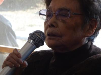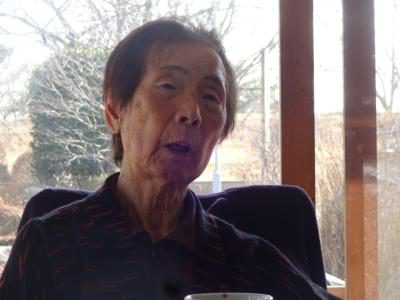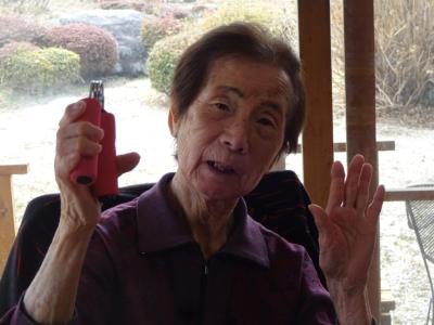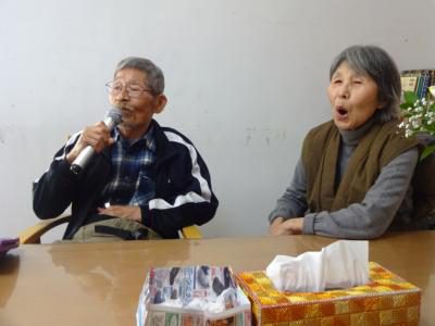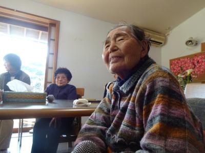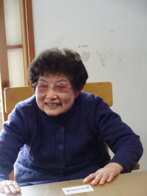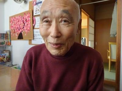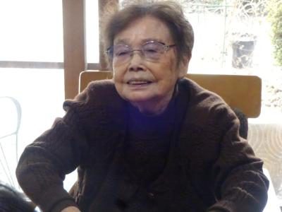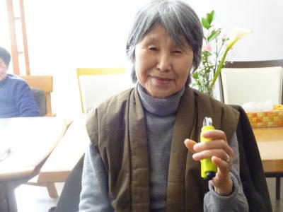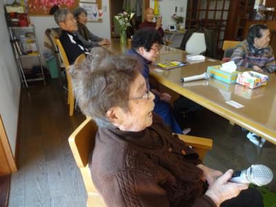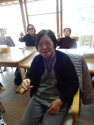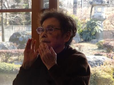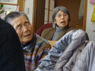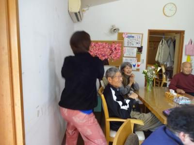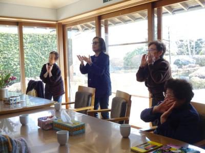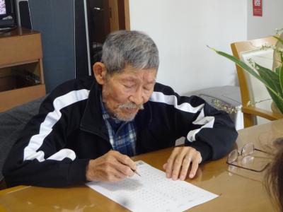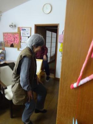 立ち上がり運動に、少し遅れた母が照れ笑い