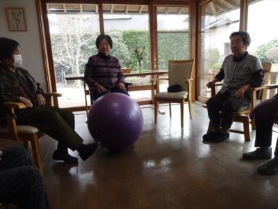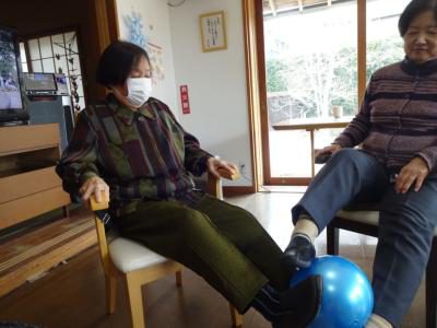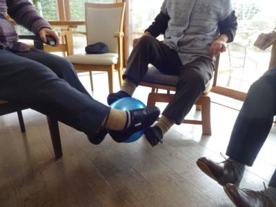 小さいボールを使って足に挟んでお隣さんに回して行きましょうあせあせ (飛び散る汗)