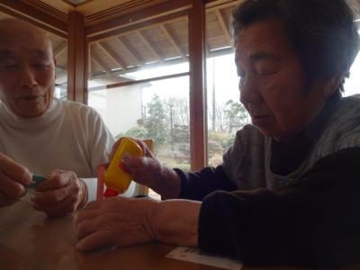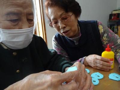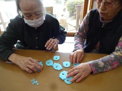 残りのお時間を指先の運動を兼ねて皆で協力して制作中ですdouble exclamation