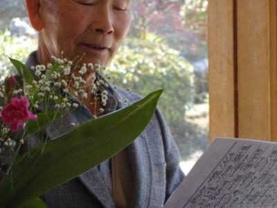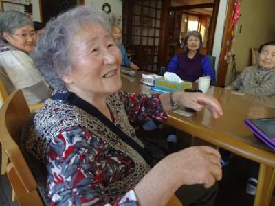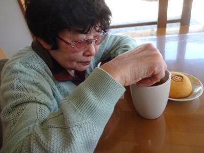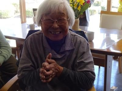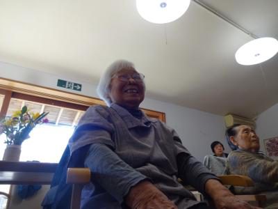 スタッフの「ベ~」の顔が、面白過ぎて思わず吹き出す母(笑)