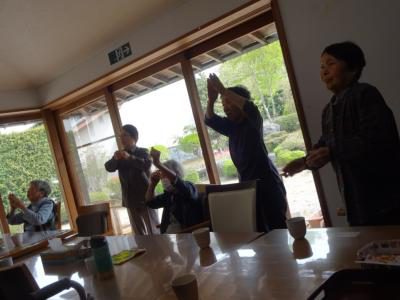 音楽に合わせて手拍子しながらリズム体操・・・・