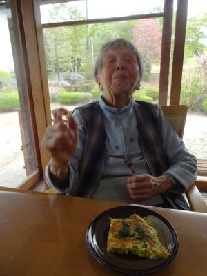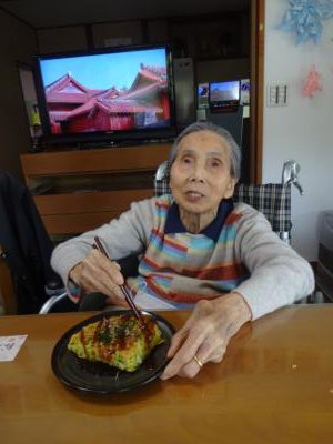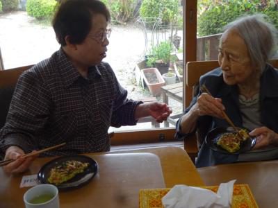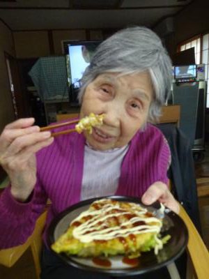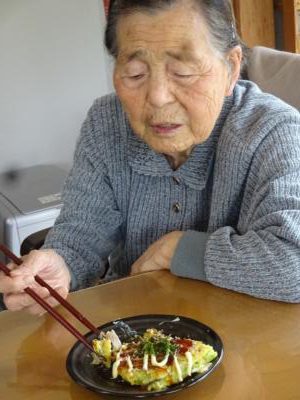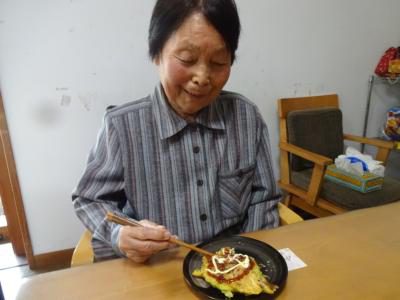 美味しいお好み焼きにステキな笑顔