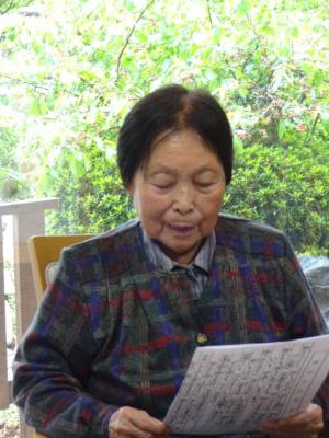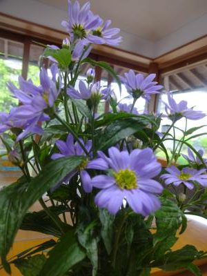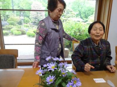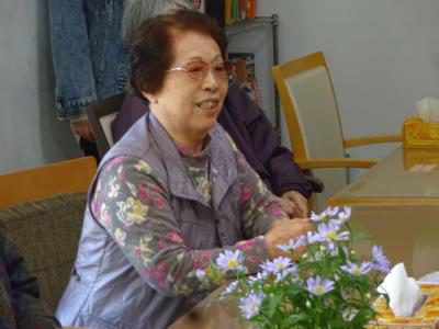 「私、ミヤコワスレ、大好き」とほほ笑むお母さん