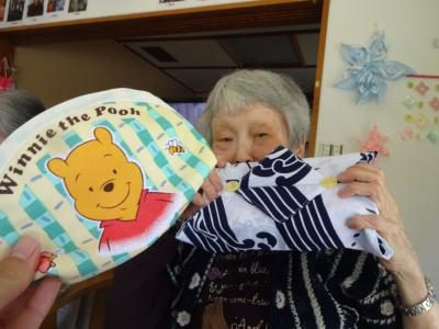 ↑こちらのお母さんが作ったティッシュカバーとポーチを披露してくださいました