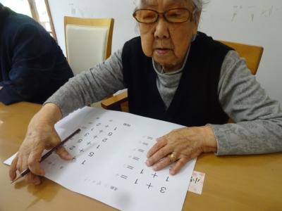 母の裁縫話をしつつ、プチ休憩した後は、計算問題で頭の体操から午前の運動がスタート