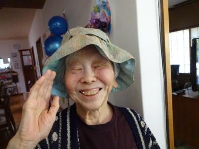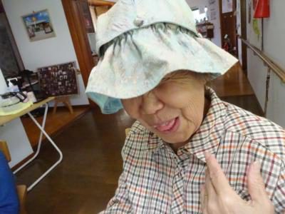 帽子が飛ばないように、真ん中にゴムが入っているんですよぉ