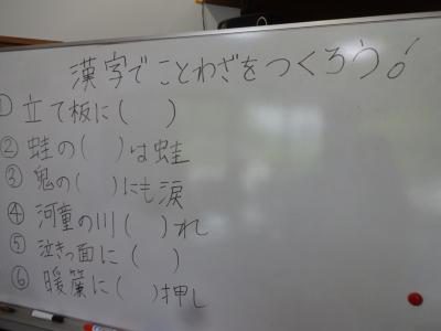 さあ みなさまで、漢字でことわざを作っていただきましょー