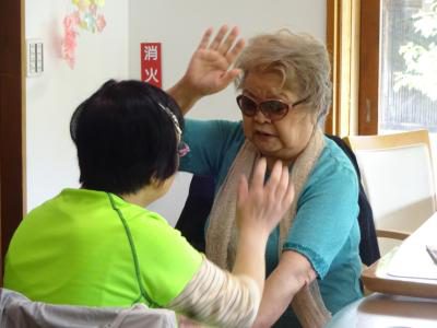 それでは、隣の方と握手しながら大きな声で「ワハハ」