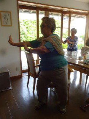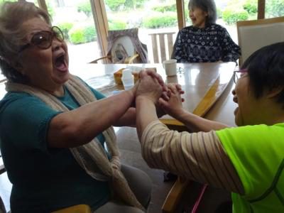 運動の後は、今日も笑いのヨガを取り入れてみました