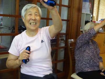 機能訓練も楽しく・真剣に写真で伝わってきますね