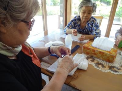 針仕事ですね。自分で作ってた雑巾家に持ってきました。もったいないからテーブル拭きにすると言っております😊
