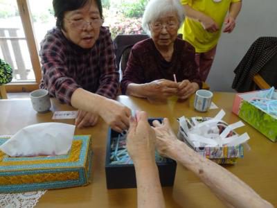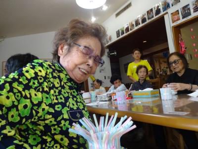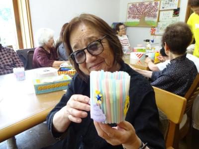 今日のレクリエーションはストロー工作