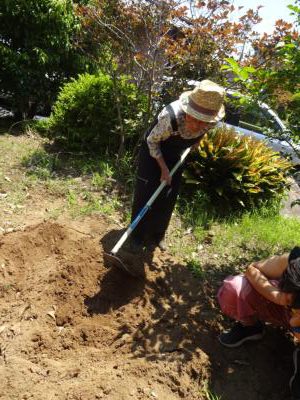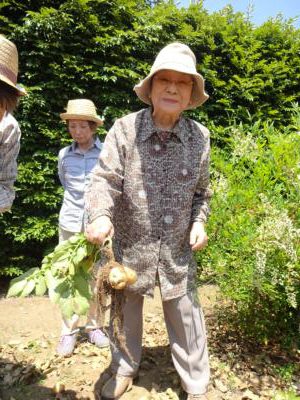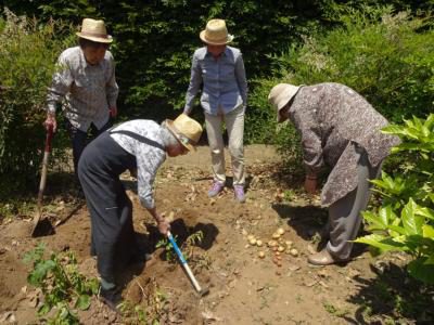 そろそろ植えたジャガイモが収穫時期だということで・・