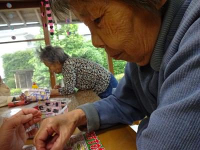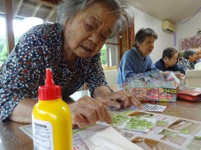糊で付ける作業はほんの少しだけ お手伝いあせあせ (飛び散る汗)