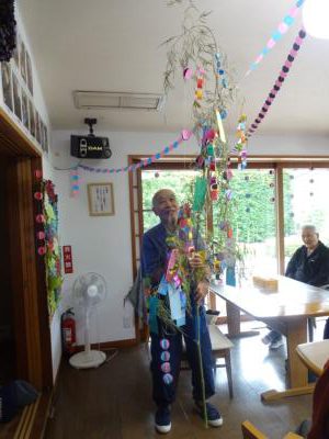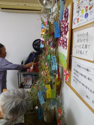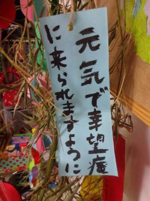 七夕の願いを書いて頂いた短冊を付けて頂いて