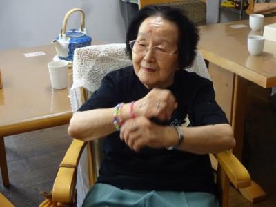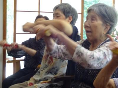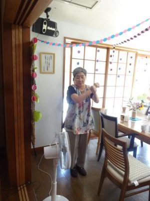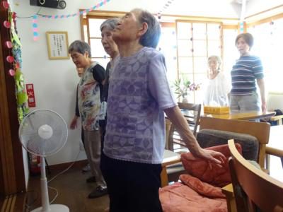 お昼寝したり、ガールズトークに花を咲かせたり…思い思いに休憩を過ごした後は、いつも通り歌謡体操で午後の眠気に別れを告げますよグッド (上向き矢印)手 (グー)
