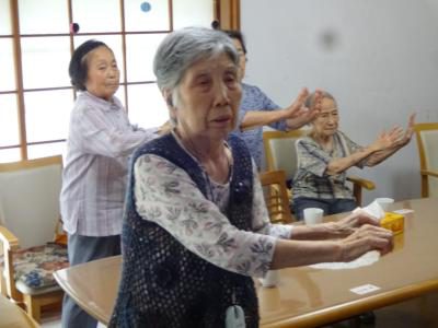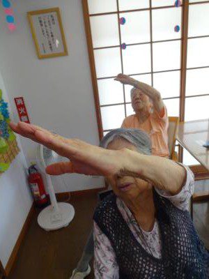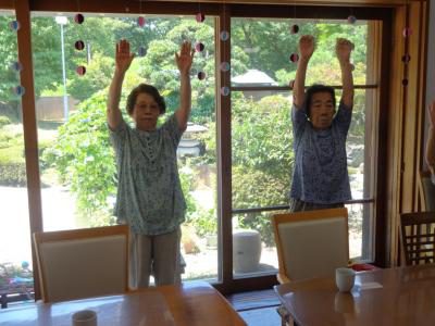 ラジオ体操を真面目に行うと、汗が出てきますね
