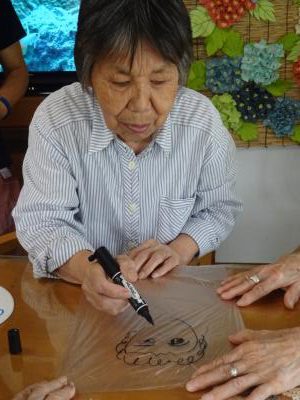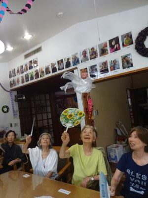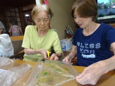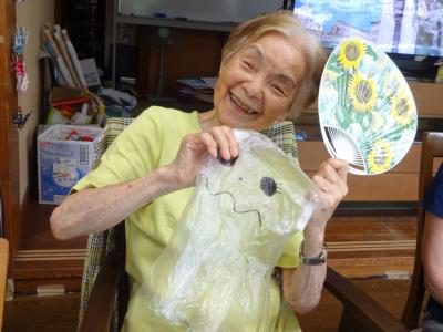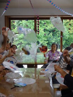 今日もお世話になりました。今日はビニール袋にいかを書いてうちわであおって皆さんたち楽しく過ごしておりますね😊