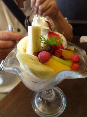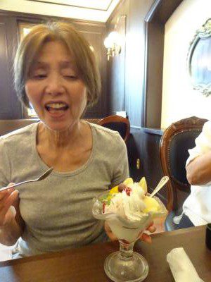 ↑こちらのお二人さんは仲良く同じあんみつを注文したようです