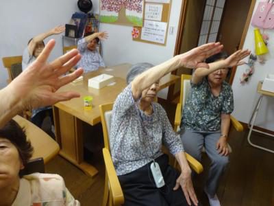 肩こり解消・ぐいーんと伸ばして皆さんきれいな角度で揃っています