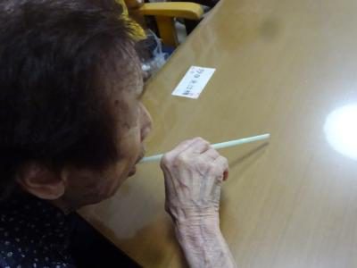 テーブルから落とさまいように一生懸命に吹いてくださいました