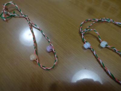 三つ編みが出来たら本日の主役「UVビーズ」の出番です